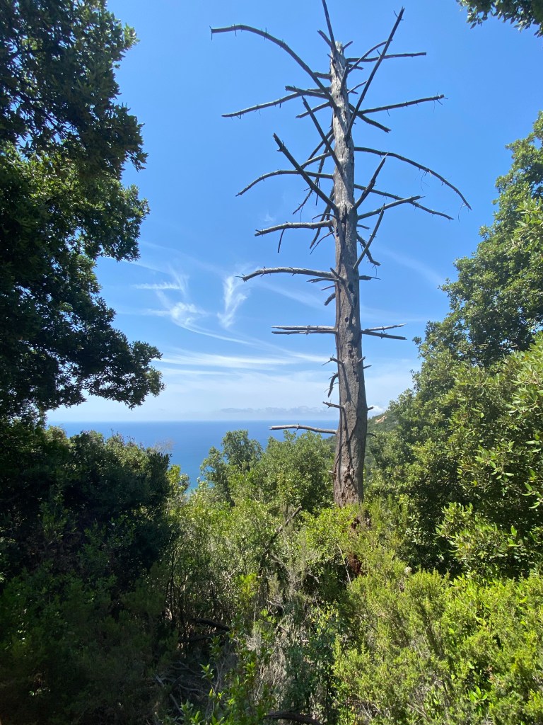 Départ à 9h30 pétante. C’est partie pour la montée ! 217m d’altitude plus tard, vous n’avez plus qu’à admirer le panorama sur l’épicentre de la ville d’Ajaccio. S’ensuit un sentier plus ou moins plat et facile (suivre la direction de Vignola) avec un pic à 362 m d’altitude. Au détour de la végétation vous aurez le luxe d’admirer des points de vue exceptionnels sur la côte et des vues plongeantes en balcon au-dessus de la mer. Les paysages sont époustouflants. La sensation d’infini que procure l’horizon de la mer est apaisante. Digne d’un Disney ! Le sentier offre des points d’ombres par moment, ce qui est très appréciable en pleine saison estivale.