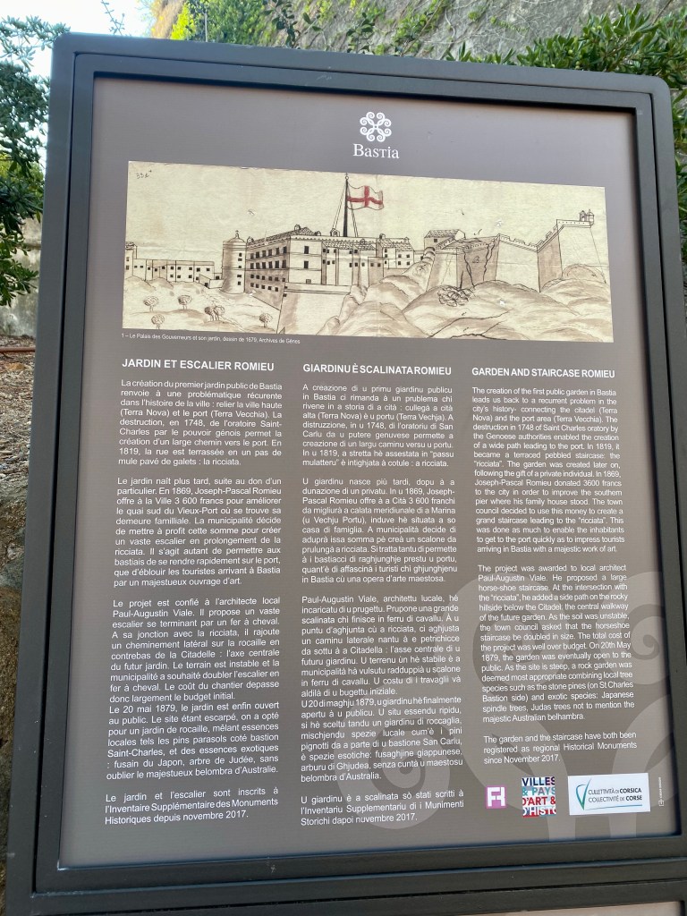 Le Jardin et l’escalier Romieu sont véritablement des trésors de la ville de Bastia, un lieu enchanteur où le temps semble suspendu. Que l’on soit natif de la région ou simple visiteur, on ne peut qu’être séduit par la quiétude et la beauté de cet endroit magique.