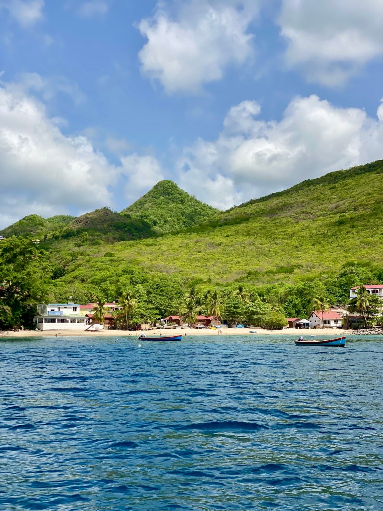 Nous faisons un arrêt devant le rocher du Diamant. Il est grand, sombre, imposant. Il y a beaucoup de courant autour. C’est une vision très impressionnante. Et j’apprends que durant la guerre des Français contre les Anglais en 1804, ces derniers avaient élu domicile sur la petite île et dormaient dans les cavités rocher face à la mer.